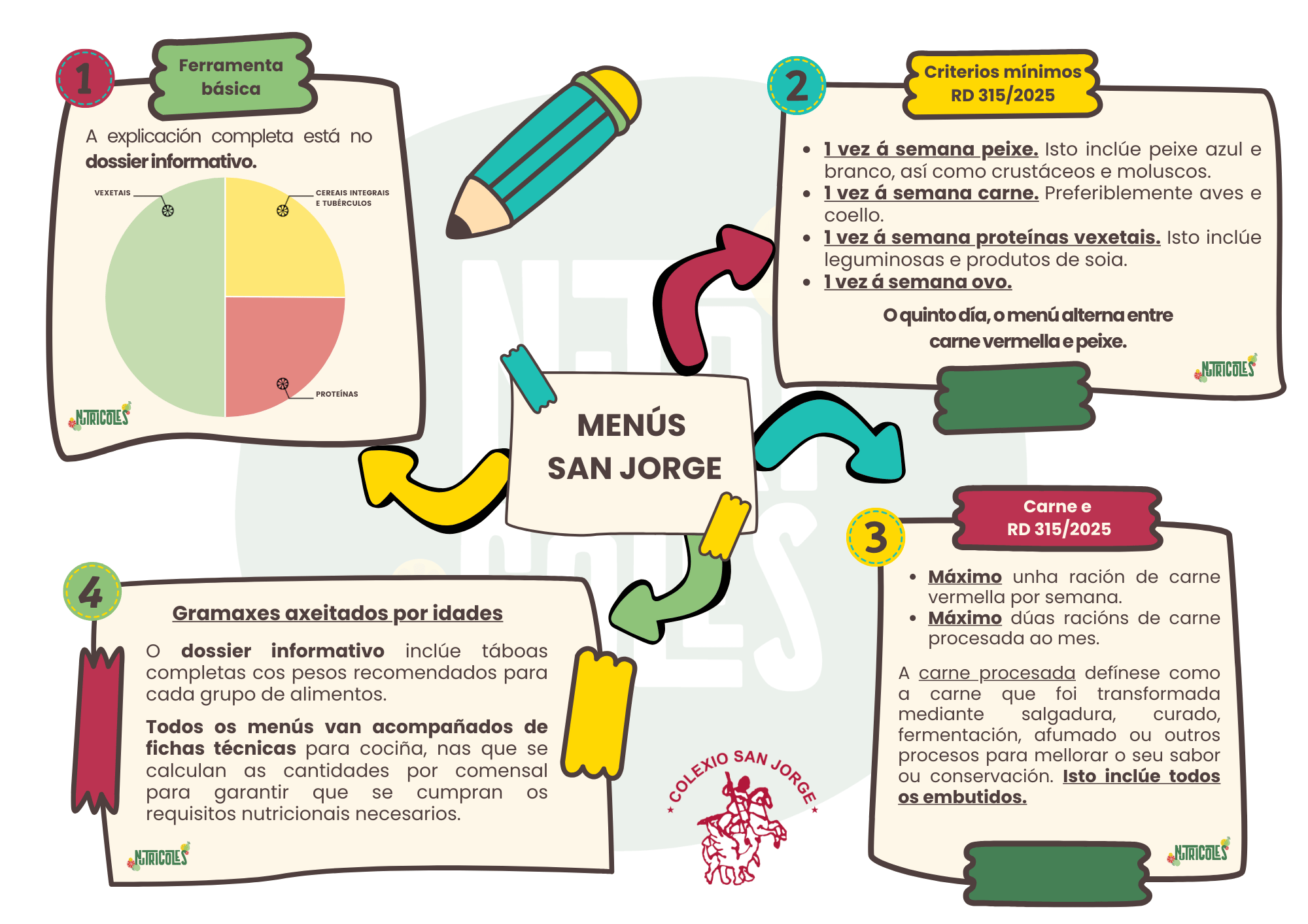 Menús elaborados seguindo a guía do Sergas e a normativa de comedores escolares, ademais adaptamos os nosos menús mensuais para alérxicos, celíacos, etc.